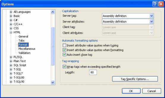 For more information, visit General, HTML, Text Editor, Options Dialog Box.