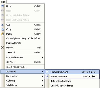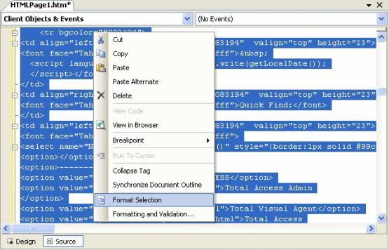 This applies the rules defined in Visual Studio for HTML code. You can customize the rules to suit your preferences by choosing the “Formatting and Validation” option from the right-click menu.