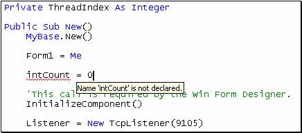 Visual Basic .NET has a background compiler that compiles your code as you type. A huge benefit of this technology is that Visual Studio .NET can show you compiler errors as you type. This benefit is truly wonderful when you remember the old Visual Basic debug cycle: compile, hit the first error, respond to the message box, fix the error, compile, and start again. With Visual Basic .NET, you can see compiler errors right way.